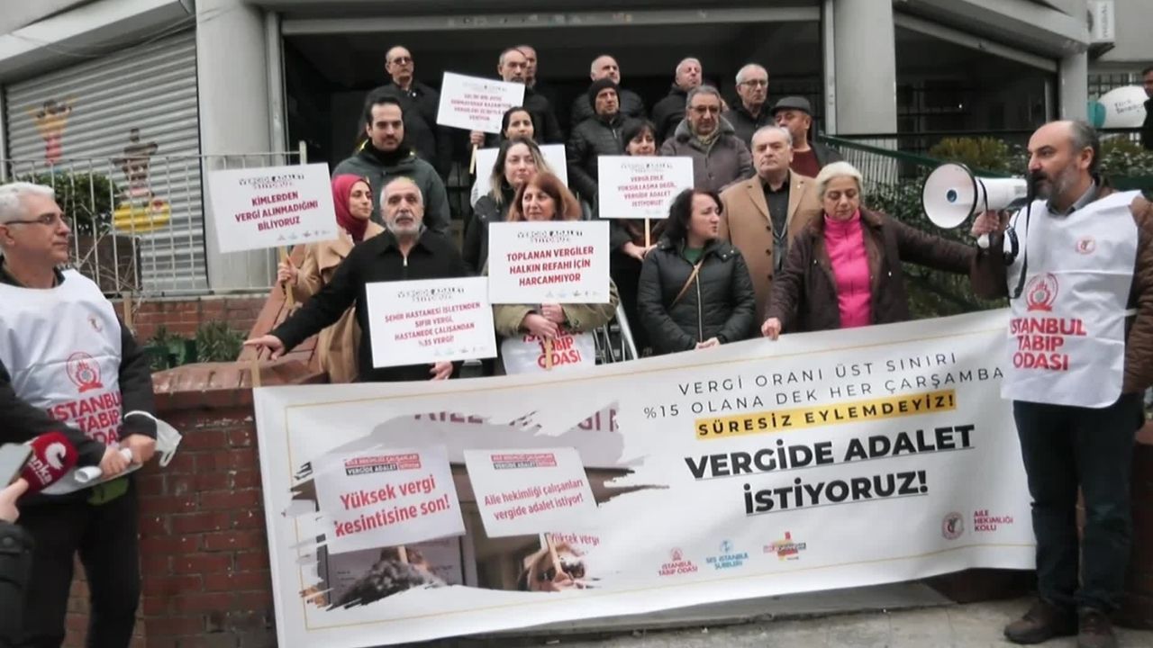 Birinci basamak sağlık çalışanları olan Aile Sağlığı Merkezi çalışanları “Vergide ve Gelirde Adalet" talebiyle Okmeydanı’nda yer alan Mahmut Şevket Paşa Aile Sağlığı Merkezi önünde eylem gerçekleştirdi.