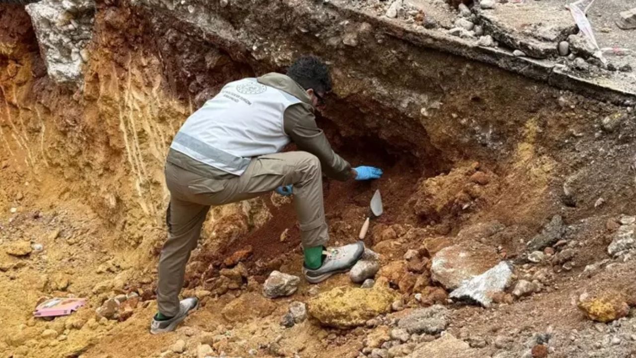 Antalya Muratpaşa ilçesi Kızılsaray Mahallesi 76 Sokak’ta ASAT ekipleri tarafından yürütülen kazı çalışması sırasında yoldan geçen bir kişi, toprak arasında kemik parçaları fark etti.