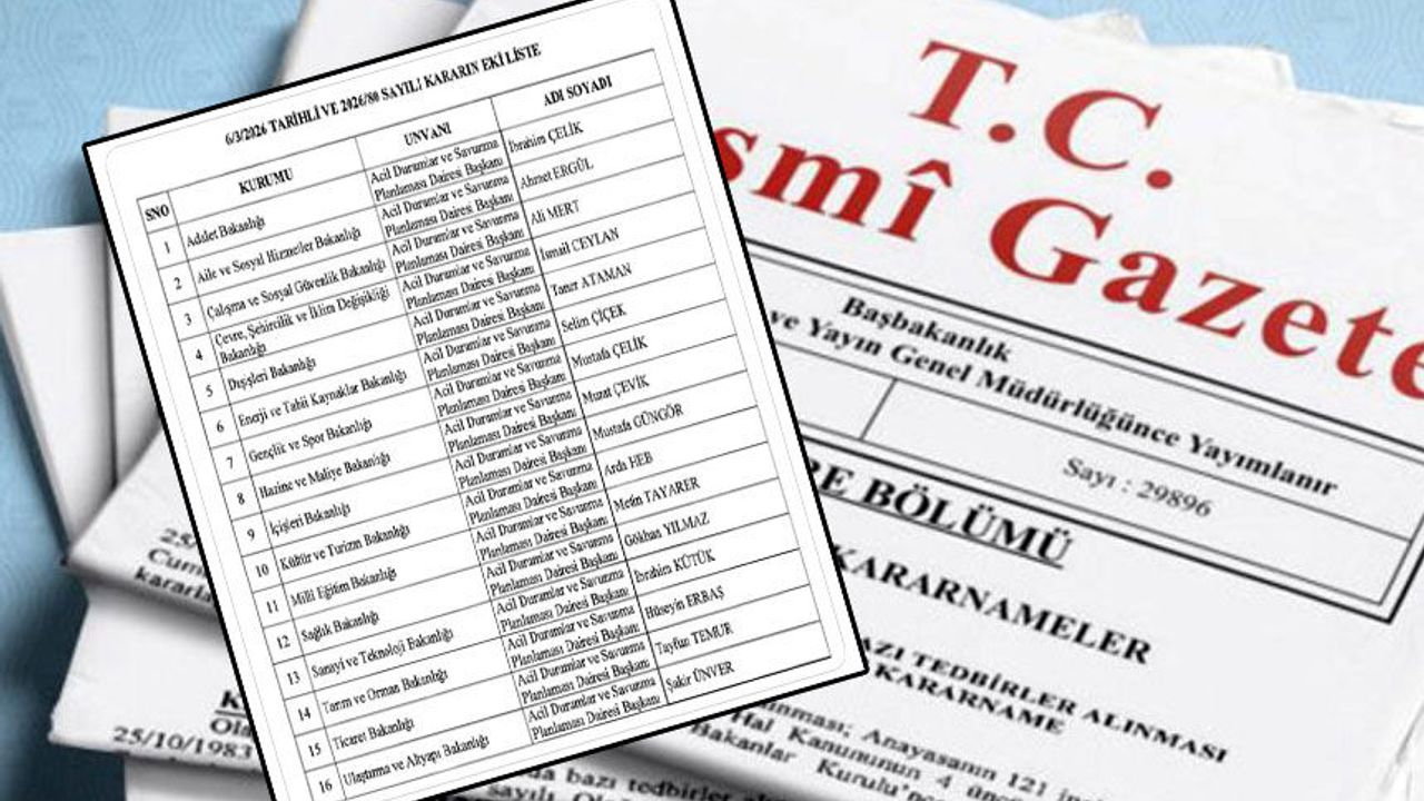 Cumhurbaşkanlığı kararıyla birçok bakanlıkta Acil Durumlar ve Savunma Planlaması Dairesi Başkanlığı görevlerine şu isimler atandı: