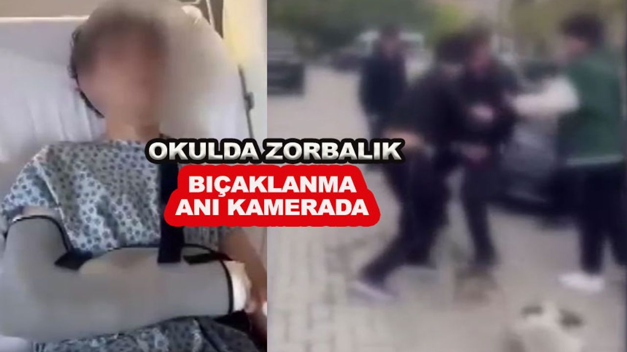 Öğrencilerin okul önünde kavga etmesi ve bir öğrencinin kolundan bıçaklanma anı cep telefonu kamerasına saniye saniye yansıdı.