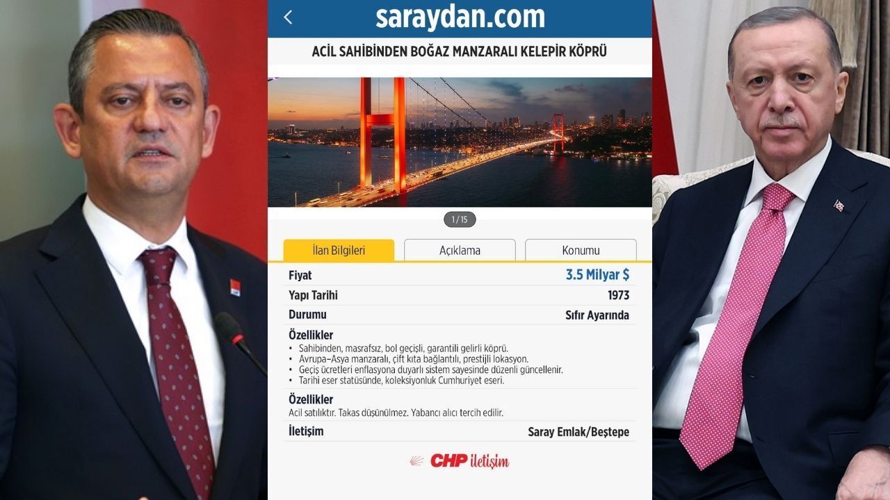 CHP Genel Başkanı Özgür Özel'in İstanbul Boğazı'ndaki 15 Temmuz Şehitler Köprüsü ve Fatih Sultan Köprüsü ile bazı otoyolların özelleştirileceğine dair açıklamalarının ardından CHP'den sosyal medyadan bir görsel paylaştı.