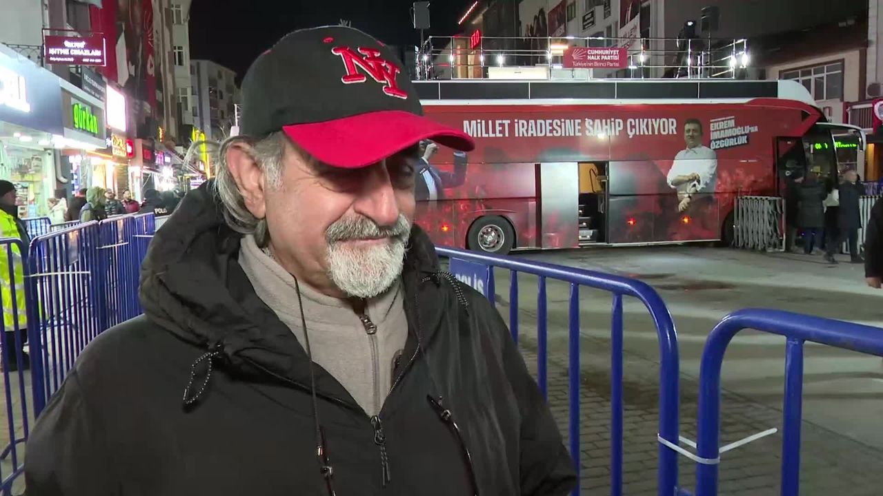 'Biz 19 Mart'ta bir ailemizle karar aldık. Çocuklarımla, eşimle. Çocuklarım çalışıyor, kızım okuyor. Eşim de evde çalışıyor. Ben de onların destekleriyle beraber bu kararı aldık; İmamoğlu'nu desteklemek amacıyla, başkanımızı, cumhurbaşkanı adayımızı. Ben de mitinglere başladım. İstanbul'da oturduğum için -üç mitingi kaçırdım sadece- hepsine gittim. Bugün de buraya hastaneden geliyorum. Hastaneye gittim, tahlillerim vardı. Onları yaptım. Kendi imkanlarımla finanse ediyorum. Kendi imkanlarımla geliyorum, emekliyim. Marmaray'a atladım, Gebze'ye geldim. Gebze'den otobüse bindim, otobüse binip Bolu'ya geldim. Bolu'dan da buraya toplu taşımayla alana geldim.'