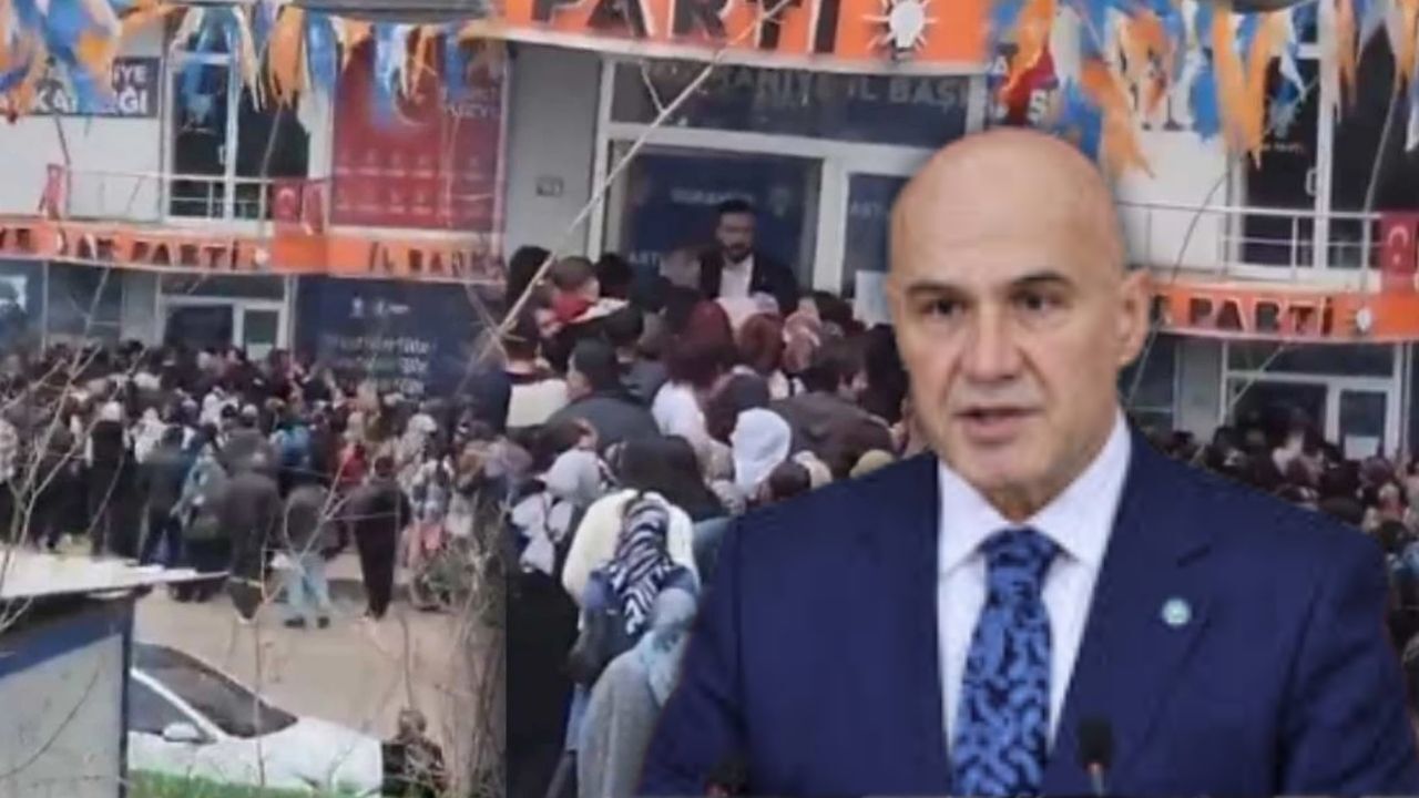 İYİ Partili Turhan Çömez, sosyal medya hesabından Osmaniye’de AKP İl Başkanlığı önünde oluşan uzun kuyrukların görüntülerini paylaşarak, “Emekliye ikramiye yok, parti binalarında harçlık mı dağıtılıyor?” dedi.