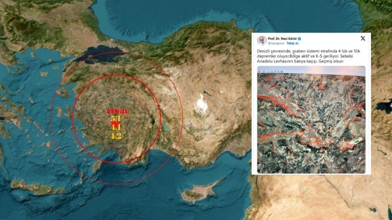 Yer bilimci Prof. Dr. Naci Görür, sosyal medya hesabından yaptığı açıklamada Denizli'deki depremlere dikkat çekerek, "Bölgenin aktif olduğuna ve kuzey–güney yönlü gerilme yaşandığına işaret etti.G örür, bunun nedeninin Anadolu Levhasının batıya doğru hareketi olduğunu ifade ederek vatandaşlara geçmiş olsun dileğinde bulundu.