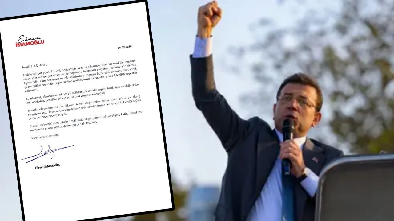 İmamoğlu Tele'2 ailesi için kaleme alığı mektubunda "Tüm baskılara ve olumsuzluklara rağmen habercilik onurunu koruyarak gösterdiğiniz cesur duruş için Türkiye ve demokrasi mücadelesi adına içtenlikle teşekkür ediyorum" ifadelerini kullandı.