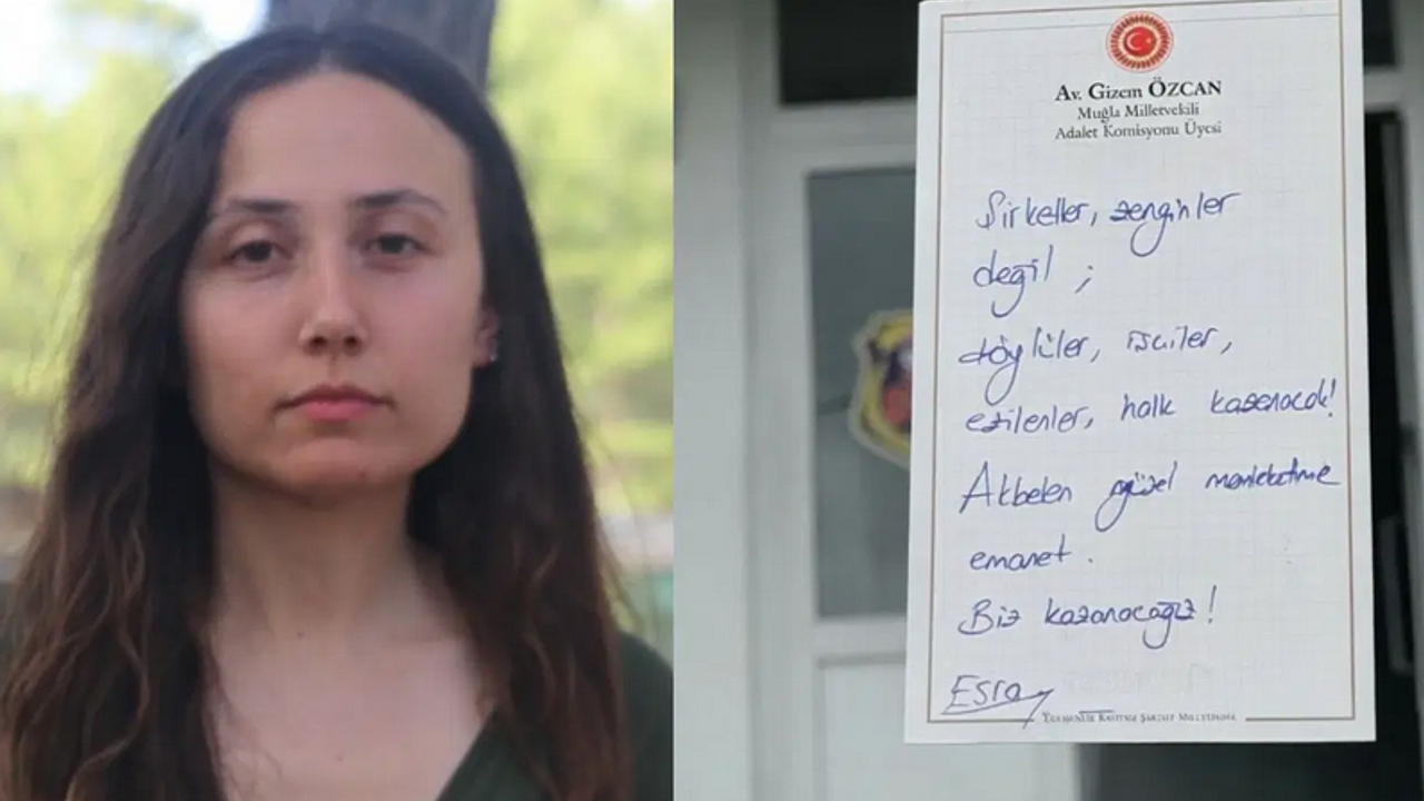 Özcan, "Esra’nın morali yüksek, iradesi dimdik, mücadele azmi güçlü. Esra'yı alacağız, Akbelen’i vermeyeceğiz. Esra'nın hepimize bir mesajı var, paylaşıyoruz" dedi.