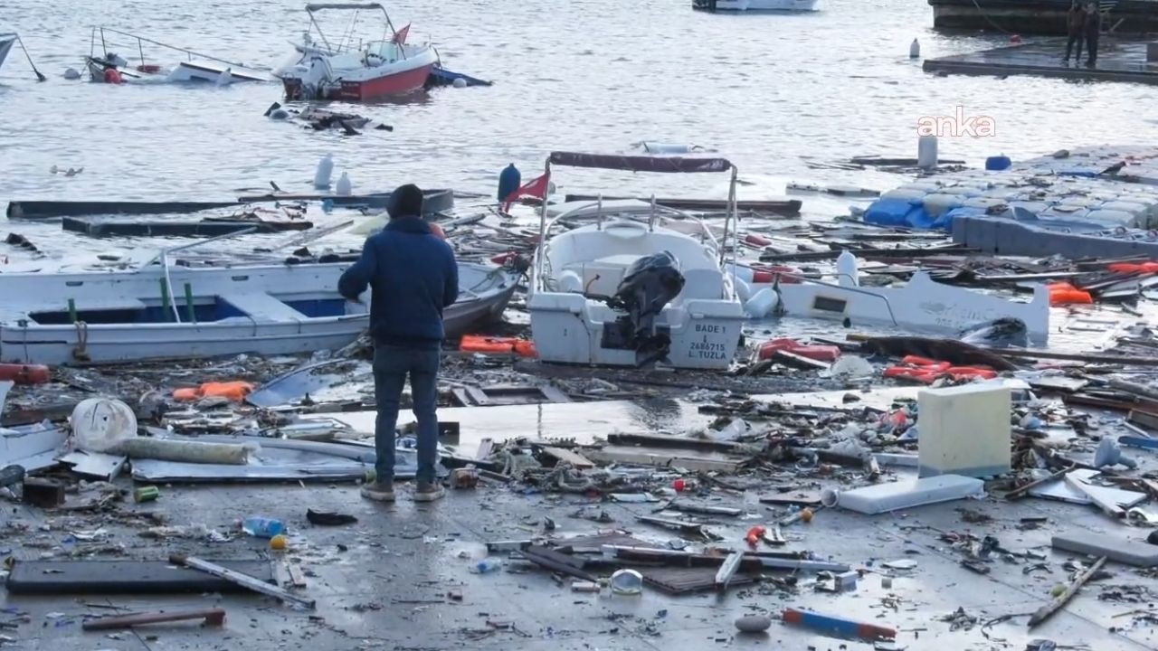 Tuzla'da öğle saatlerinde yaşananları ANKA'ya anlatan Sercan Keleş, “Sabahtan beri çok şiddetli bir lodos vardı. Yani yediden beri buradayız. İlk başladığında çok sert değildi. Sonradan sertleşti rüzgar. Yaklaşık 25-30 tane tekne gözümüzün önünde paramparça oldu.