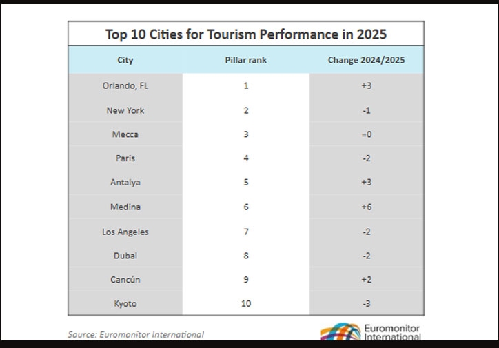 Euromonitor International Ltd.'in 2025 'Dünyanın en iyi 10 Turizm Kenti sıralaması belli oldu.
