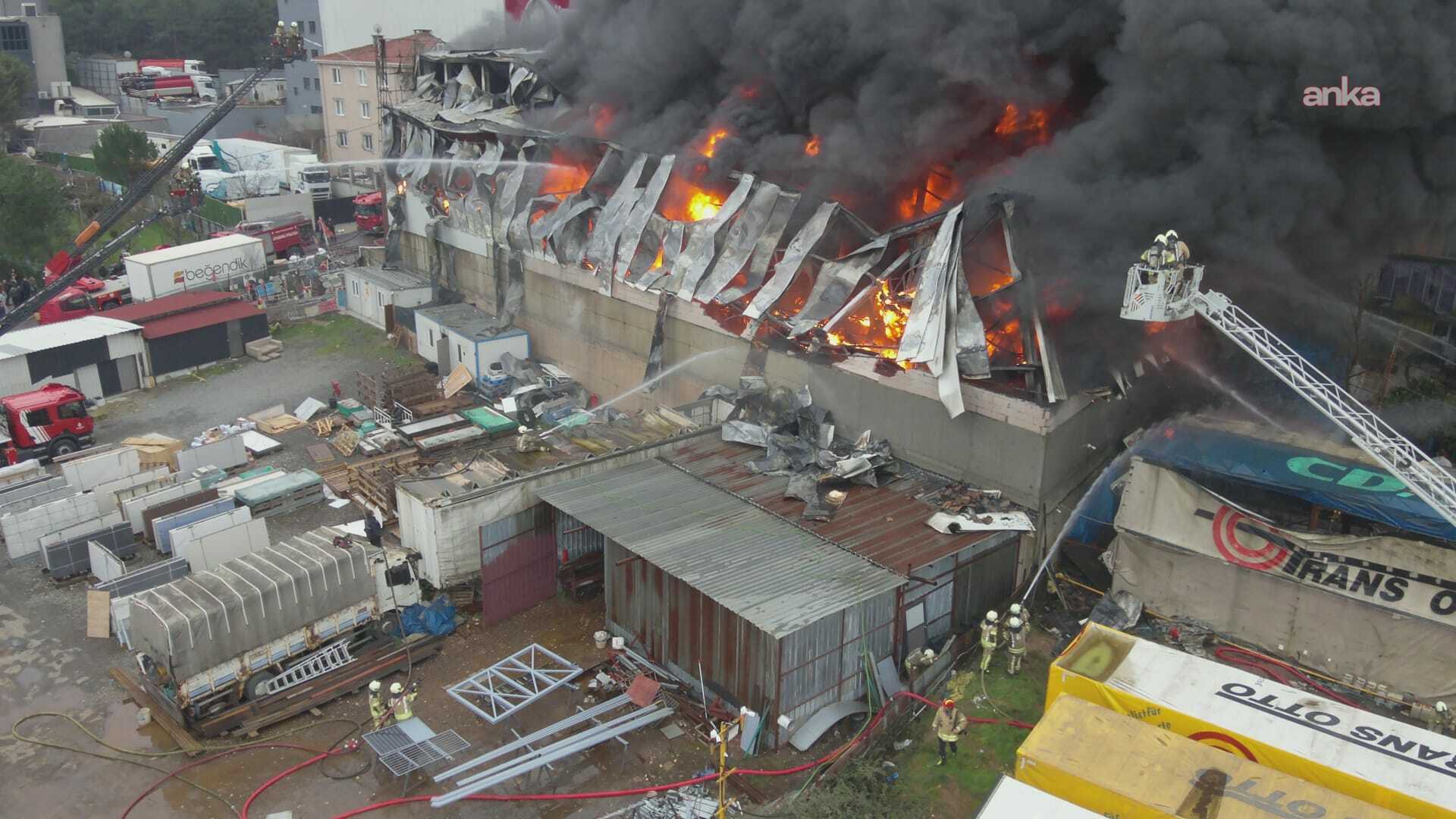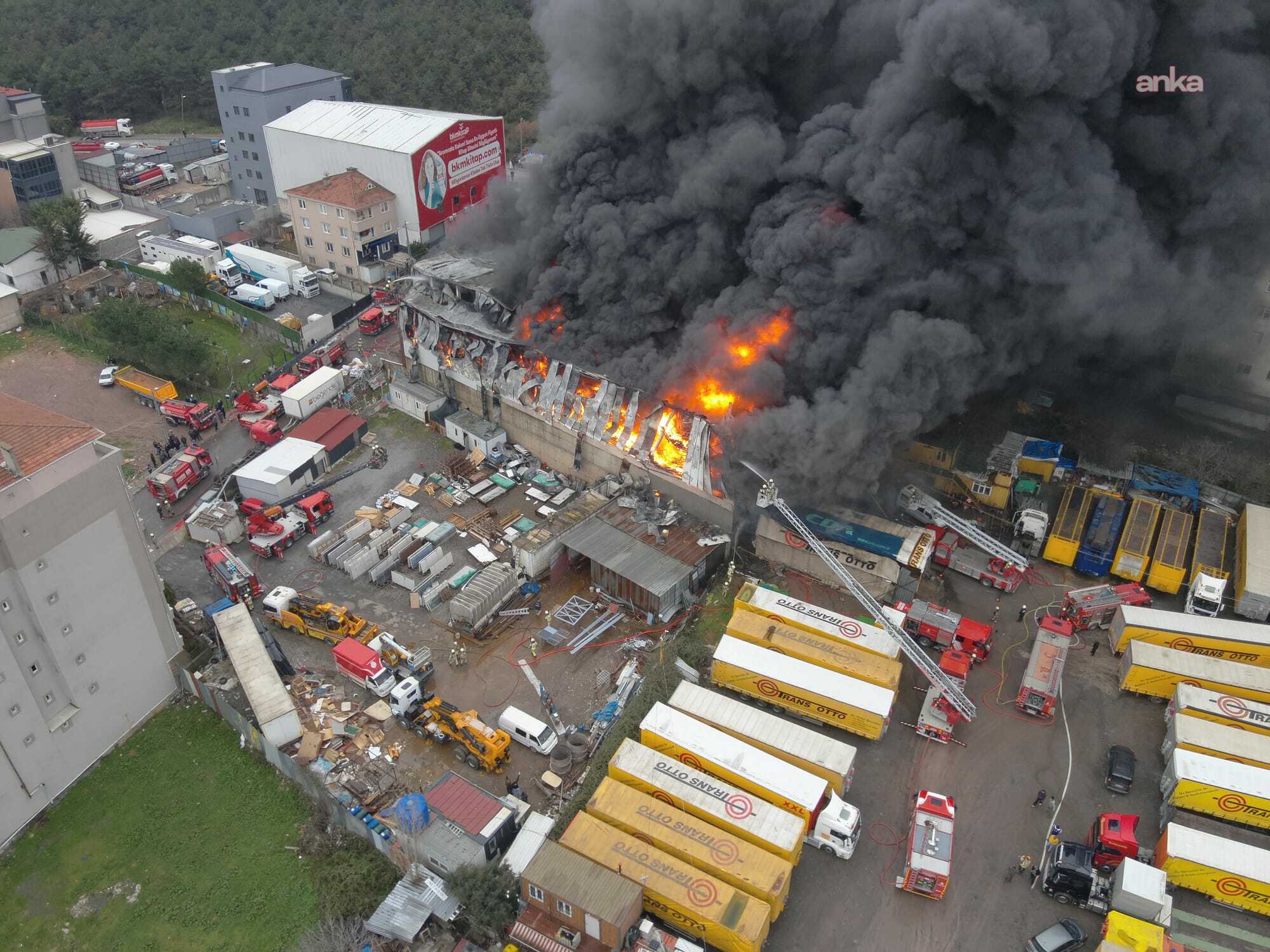 Kısa sürede büyüyen alevler iş yerini sararken, ihbar üzerine olay yerine çok sayıda itfaiye ekibi sevk edildi.