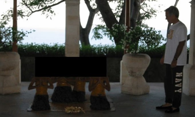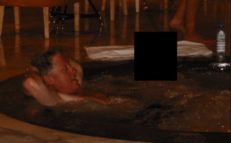 eski ABD Başkanı Bill Clinton havuz partisinde, fotoğrafta diğer insanlar sansürlenmiş.