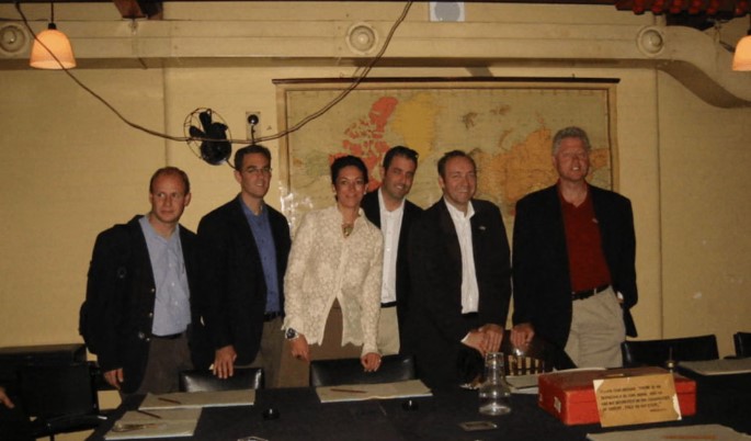 Bill Clinton ve yanında cinsel tacizden yargılanan aktör Kevin Spacey (sağdan ikinci) ile Ghislaine Maxwell.