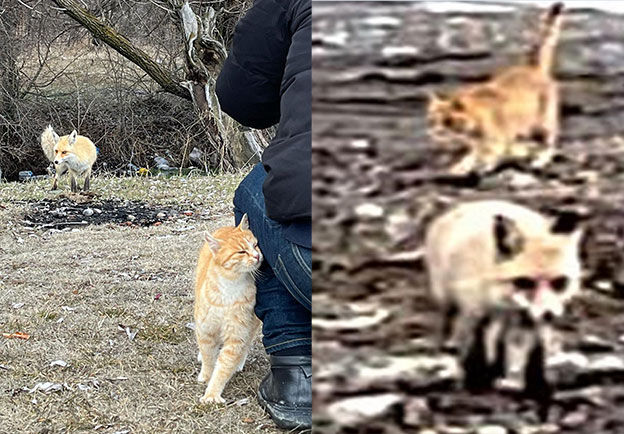 İki hayvanı yan yana gören grup, şaşkınlıklarını gizleyemedi. O anları cep telefonu kamerasıyla kayıt altına alan Arduç, kedi ile tilkinin insanlardan kaçmadan, sakin bir şekilde birlikte dolaştığını belirtti.