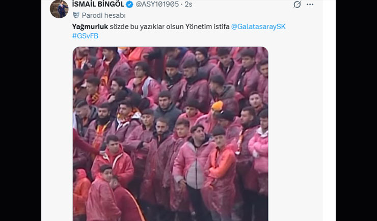 Maçtan sonra ise sosyal medyada taraftarlara dağıtılan yağmurluk kalitesi tartışma konusu oldu. "Yağmurluk" ve "istifa" en çok paylaşılan sözler oldu. Taraftarlar, Galatasaray'ın dağıttığı yağmurluğu çöp poşetine benzettiler.