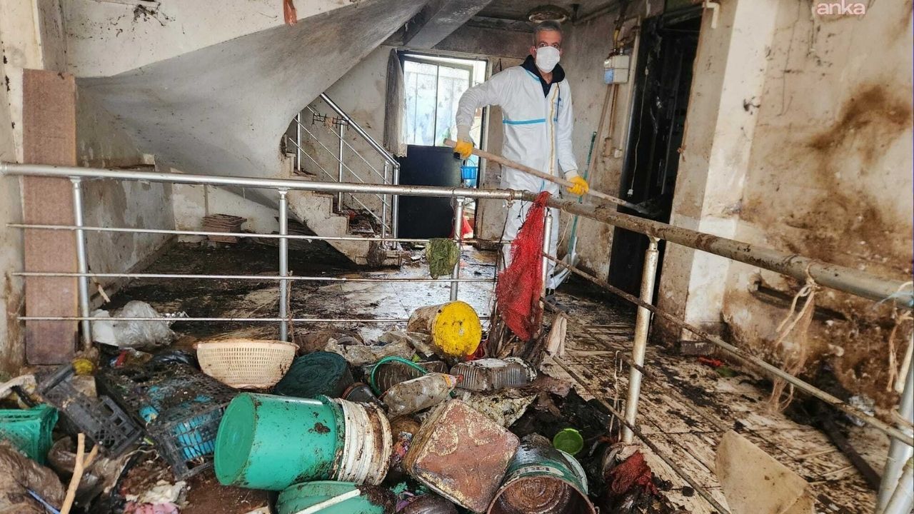 Evin tamamen boşaltılmasının ardından biriken çöplerin neden olduğu bakteri, haşere ve kötü koku oluşumunu engellemek amacıyla binanın içi ve çevresi detaylı bir şekilde ilaçlanarak dezenfekte edildi.