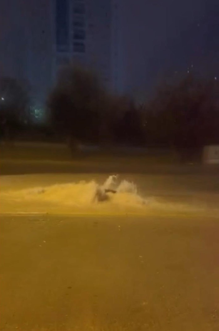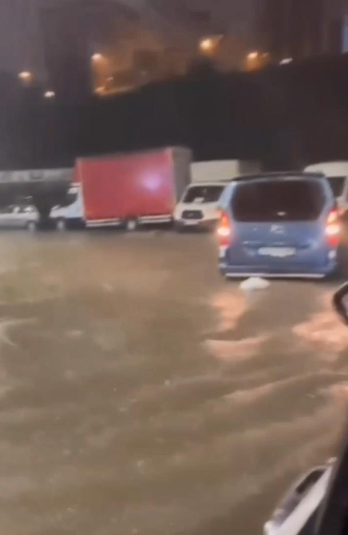 Sağanak yağış nedeniyle Sultangazi Gazi Mahallesi'nde caddeler su altında kaldı; araçlar ilerlemekte zorlandı.