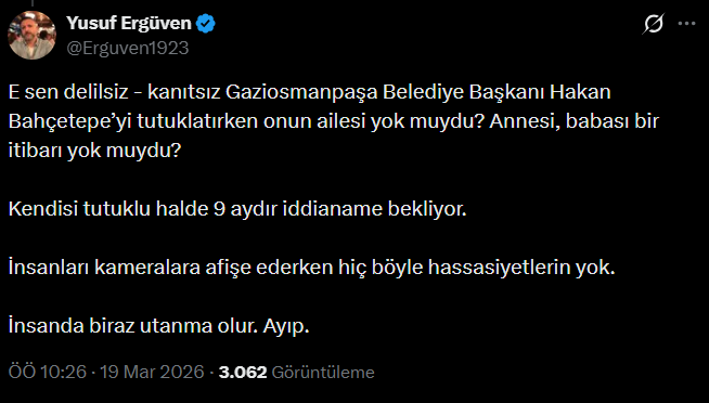 Gürlek'e sosyal medyada çok sayıda tepki geldi. Gürlek'e İBB davasında gizli tanık beyanlarıyla tutuklananların aileleri hatırlatıldı.