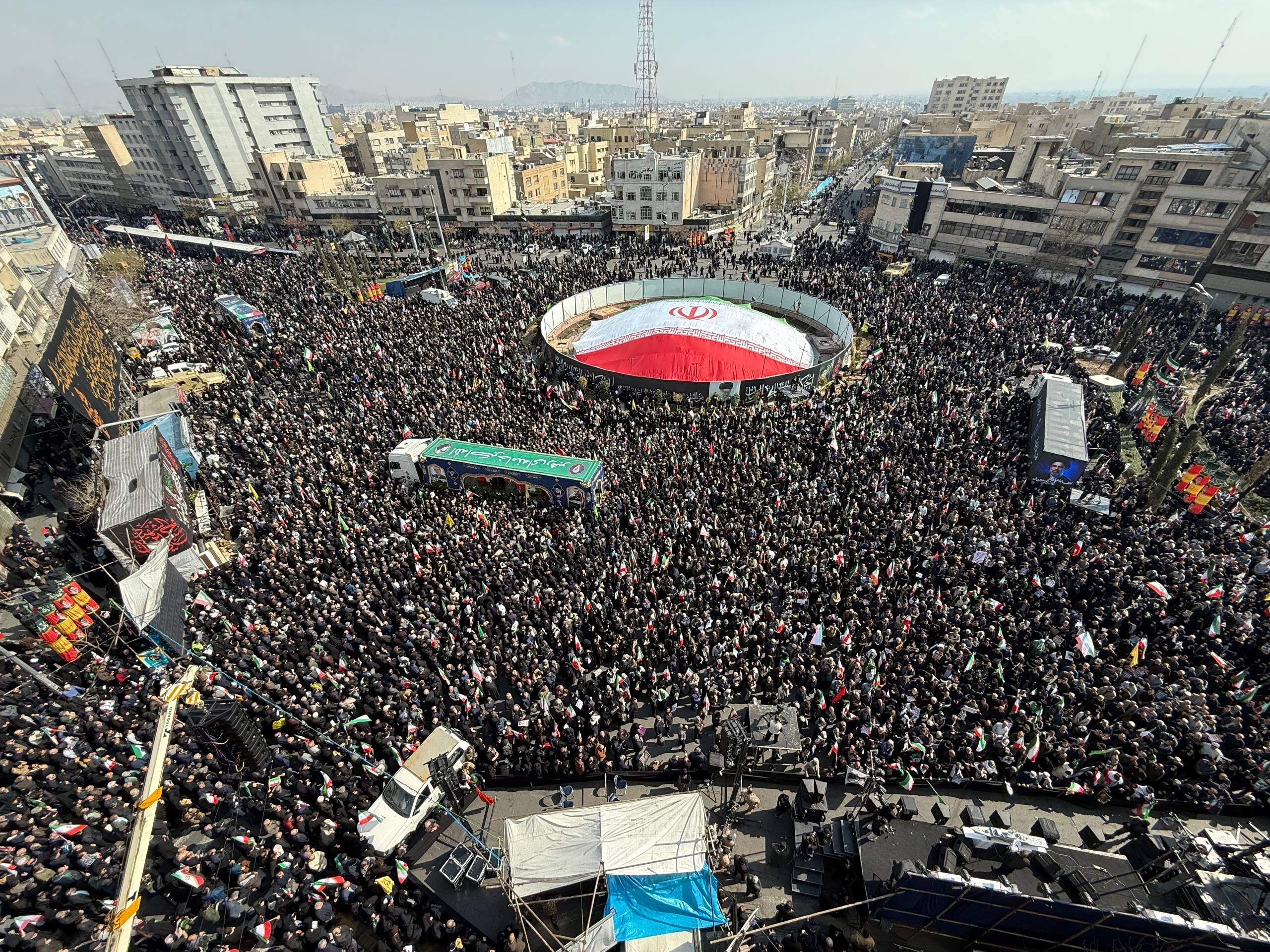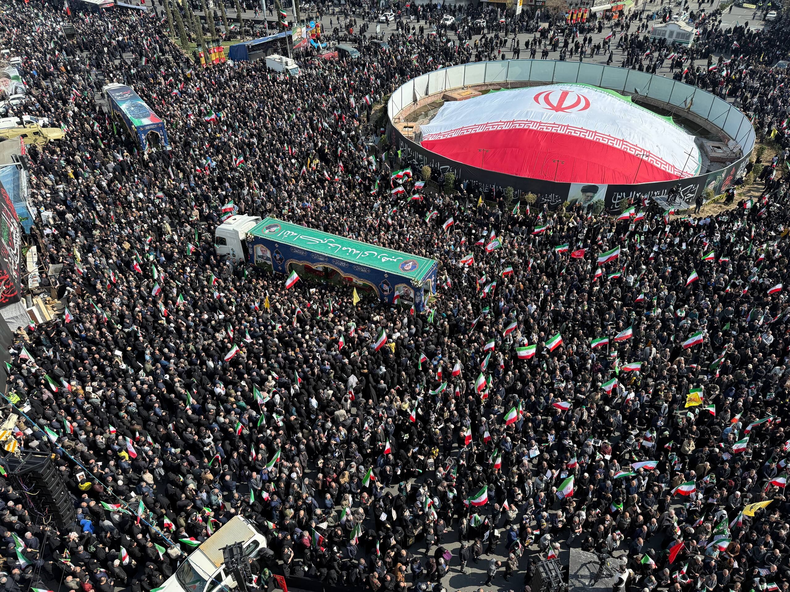 Başkent Tahran'daki İnkılap Meydanı'nda düzenlenen cenaze törenine, vatandaşlar yoğun katılım gösterdi.