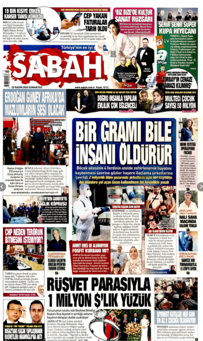 Sabah, İmralı kararını kutu haber veya sürmanşetten de görmedi. Konu ile ilgili sadece bir yazarının CHP'yi hedef aldığı yazı, ilk sayfanın sol alt köşesinde minik bir şekilde yer aldı.