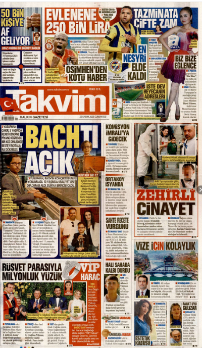 Takvim Gazetesi de Öcalan ziyareti ile ilgili ne bir manşet attı ne de bir kutu haber hazırladı.