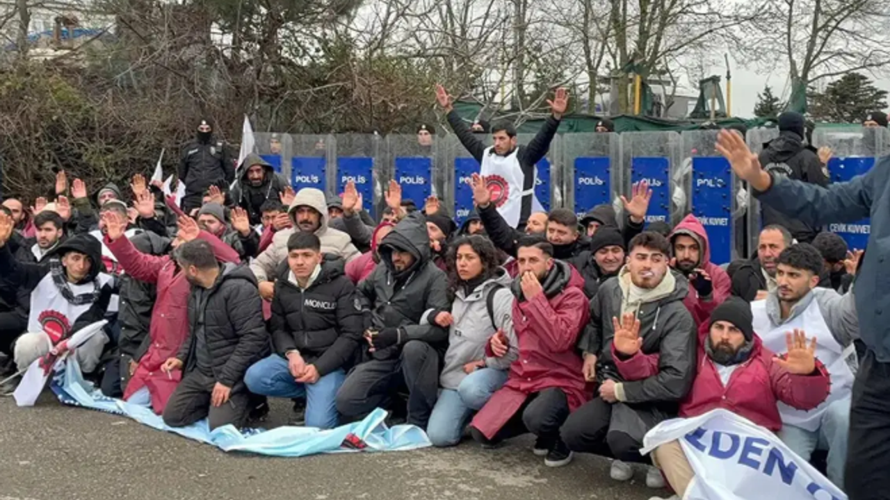 Yaklaşık 100 işçi, aralarında sendika yöneticilerinin de bulunduğu grup ters kelepçeyle gözaltına alınarak İstanbul Fatih'teki Vatan Emniyet'e götürüldü.