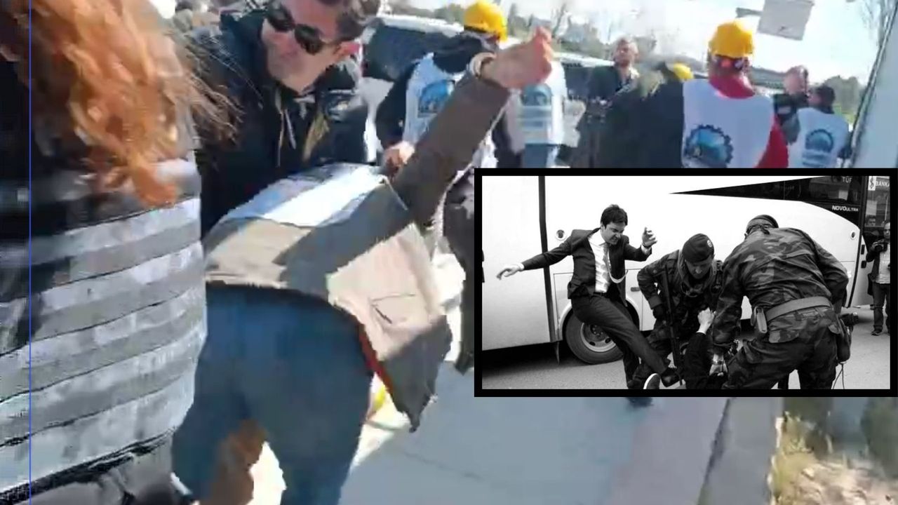 Bu görüntüler, Soma maden faciasında, dönemin Başbakanı Recep Tayyip Erdoğan'ın Soma ziyareti sırasında düzenlenen protestolarda, Başbakanlık Müşaviri Yusuf Yerkel, iki özel harekat polisi tarafından yere yatırılarak zapt edilen madenci yakını Erdal Kocabıyık'ı tekmelemesini akla getirdi.