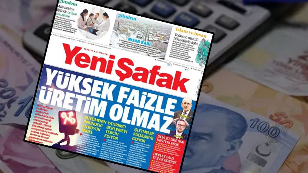 Bugünkü manşeti "Yüksek faizle üretim olmaz" olan Yeni Şafak, yüzde 37'lerde olan faizin büyümenin önünde en büyük engel olduğunu, yatırımcıların beklemeyi tercih ettiğini ve işletmelerin küçülmeye gittiğini yazdı.