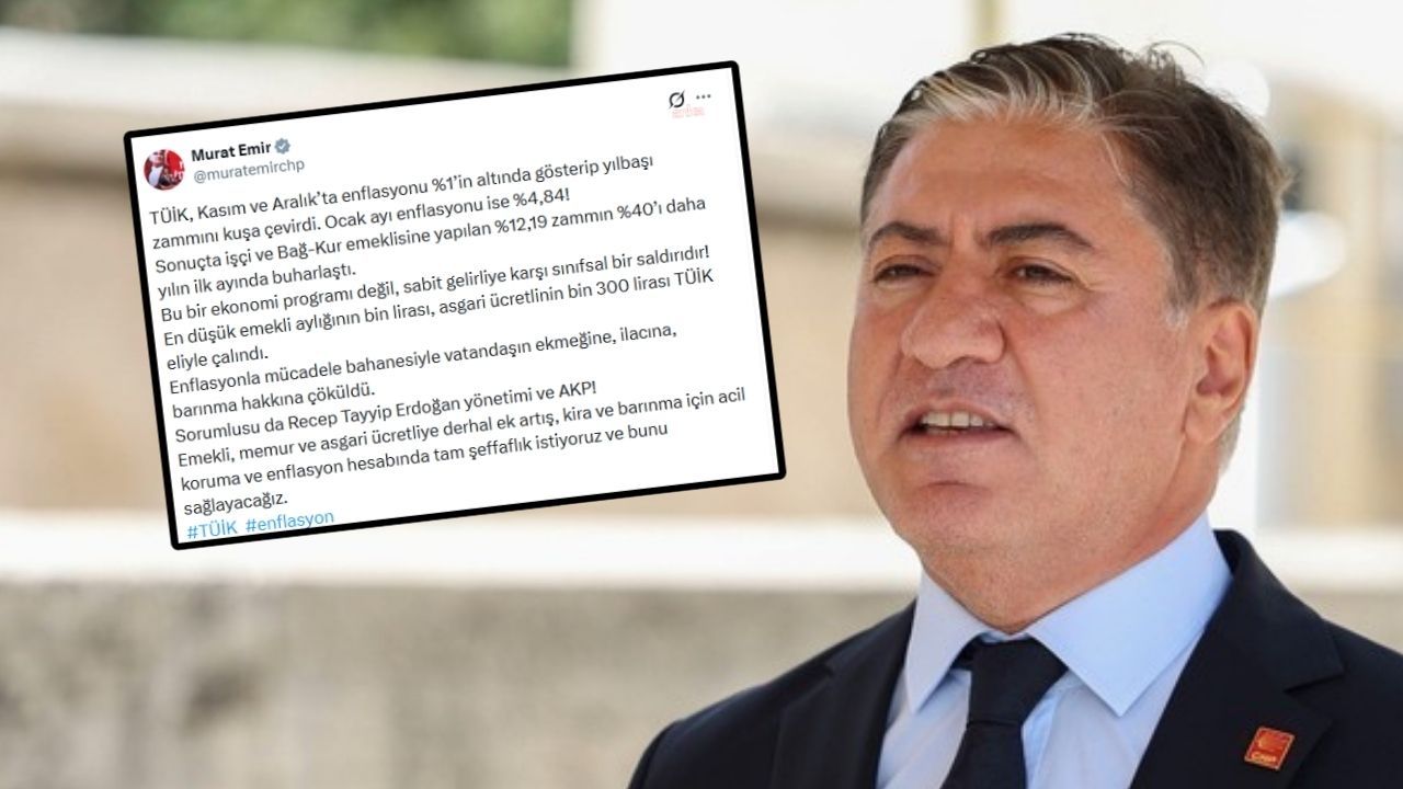 CHP Grup Başkanvekili Murat Emir, TÜİK'in ocak ayı enflasyon verilerine ilişkin sosyal medya hesabından paylaşım yaptı.