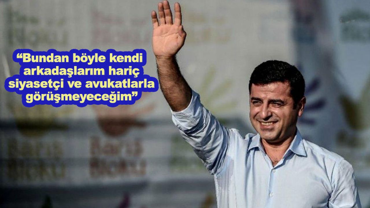 Selahattin Demirtaş, "Benim doğrudan paylaşmadığım hiçbir açıklama, yorum, düşünce beni bağlamaz. Çarpıtma, uydurma, yanıltma amacıyla yapılan ve bana mal edilen düşünceleri de şaşkınlıkla, üzüntüyle karşılıyorum. Maalesef ki hapiste olmanın dezavantajıyla yıllardır bu yapılıyor ve her birini düzeltmeye çalışmak bile ayrı külfete dönüşüyor. Anlayışınıza sığınarak, bundan böyle kendi arkadaşlarım hariç siyasetçi ve avukatlarla görüşmeyeceğimi belirtmek istiyorum" dedi.