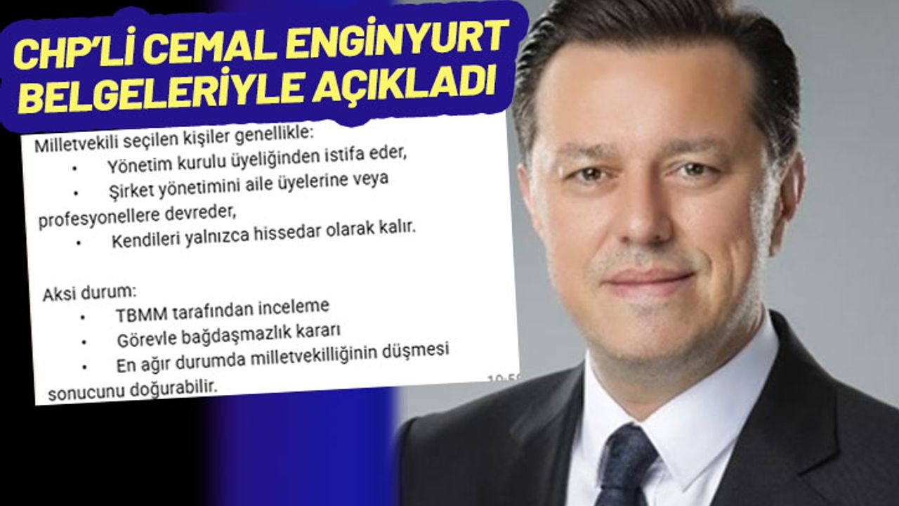 CHP Milletvekili Cemal Enginyurt 10 milyonluk saat takan ve İYİ Parti'den AKP'ye transfer olan İdris Nebi Hatipoğlu'nun halen Europen Endüstri İnşaat Sanayi Ve Ticaret Anonim Şirketi’nin Yönetim Kurulu Başkanlığı görevini yürüttüğünü belirterek, Meclis Yönetmeliği gereği vekilliğinin düşmesi gerektiğini söyledi.