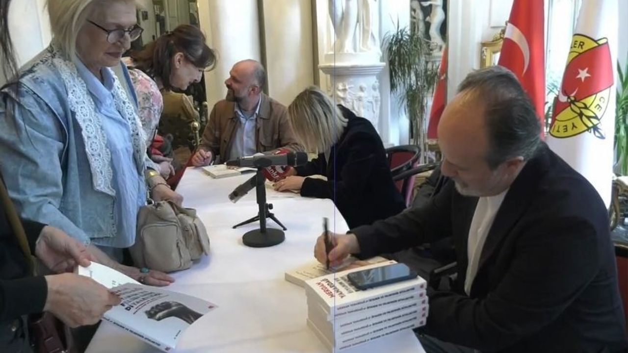 Daha sonra Merdan Yanardağ'ın son kitabı 'İsyanın ve Felsefenin Diyalektiği: Devrimci Bir Çıkış İçin Sosyolojik ve Siyasal Etütler' kitabını etkinliğe katılan temsilci ve gazeteciler Yanardağ adına imzaladı.
