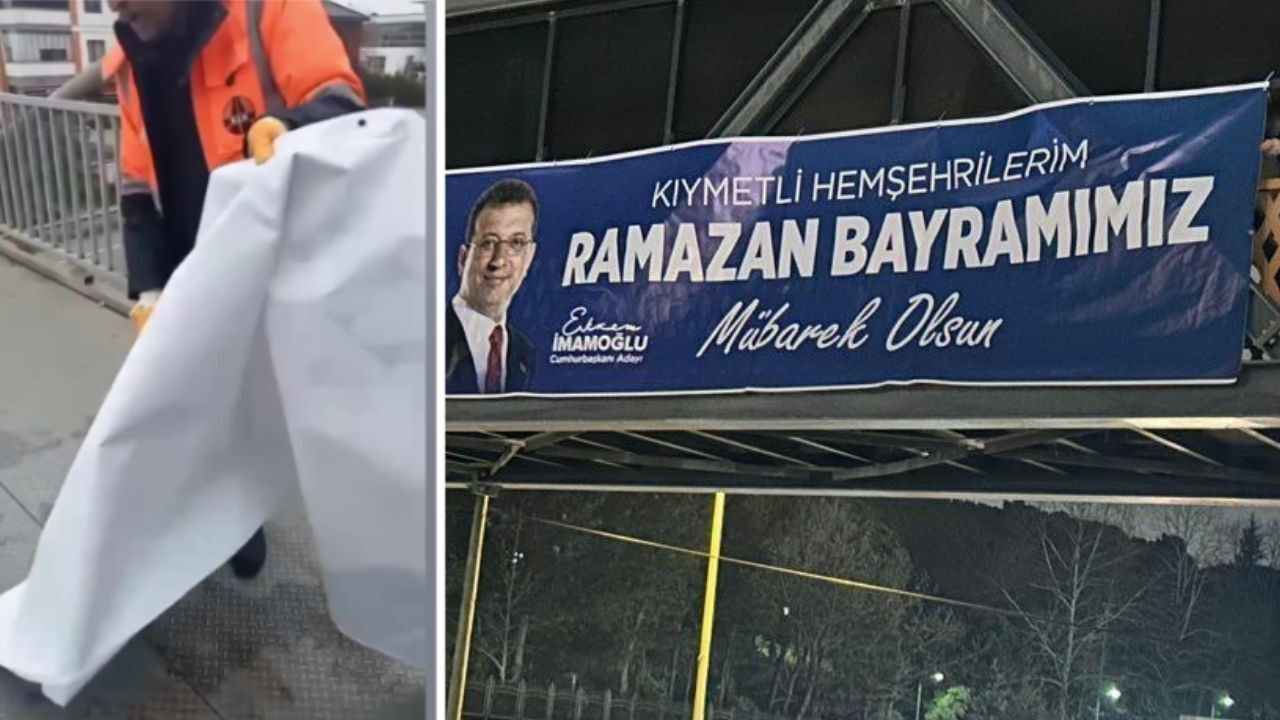 İBB Başkanı ve CHP'nin Cumhurbaşkanı adayı Ekrem İmamoğlu'nun, CHP Trabzon İl Başkanlığı ve CHP Akçaabat İlçe Başkanlığı tarafından şehirdeki bazı üst geçitlere asılan Ramazan Bayramı kutlamasına ilişkin afişler KGM ekiplerince kaldırıldı.
