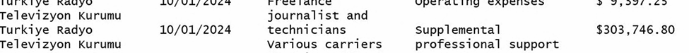 ‘1 Nisan- 30 Eylül 2024’ tarihlerini kapsayan 6 aylık süre içinde yaptığı harcama ‘1 Milyon 335 Bin 783 Dolar 87 Cent.’ (For 6 Month Period Ending 09/30/2024)