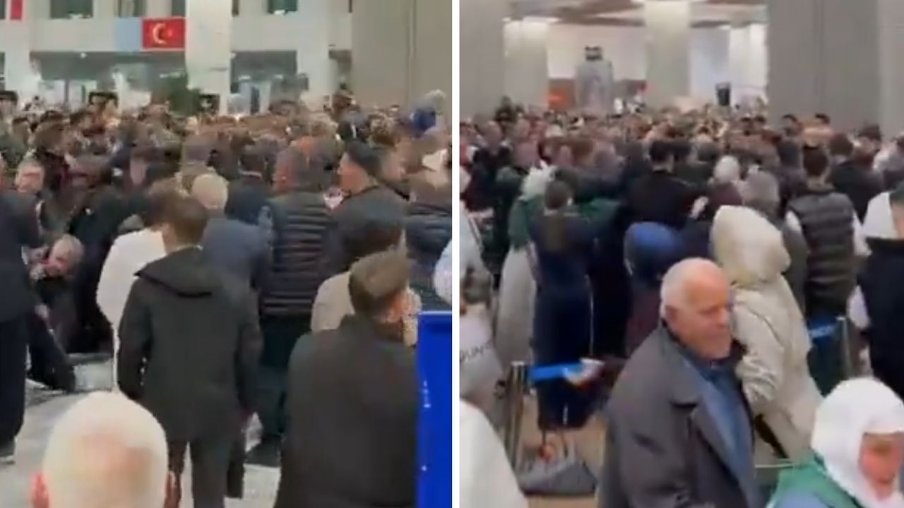 Umre yolcuları ve uğurlamaya gelen yakınları nedeniyle yüzlerce kişinin bulunduğu salonda yaşanan arbede, terminalde büyük korku ve paniğe yol açtı.