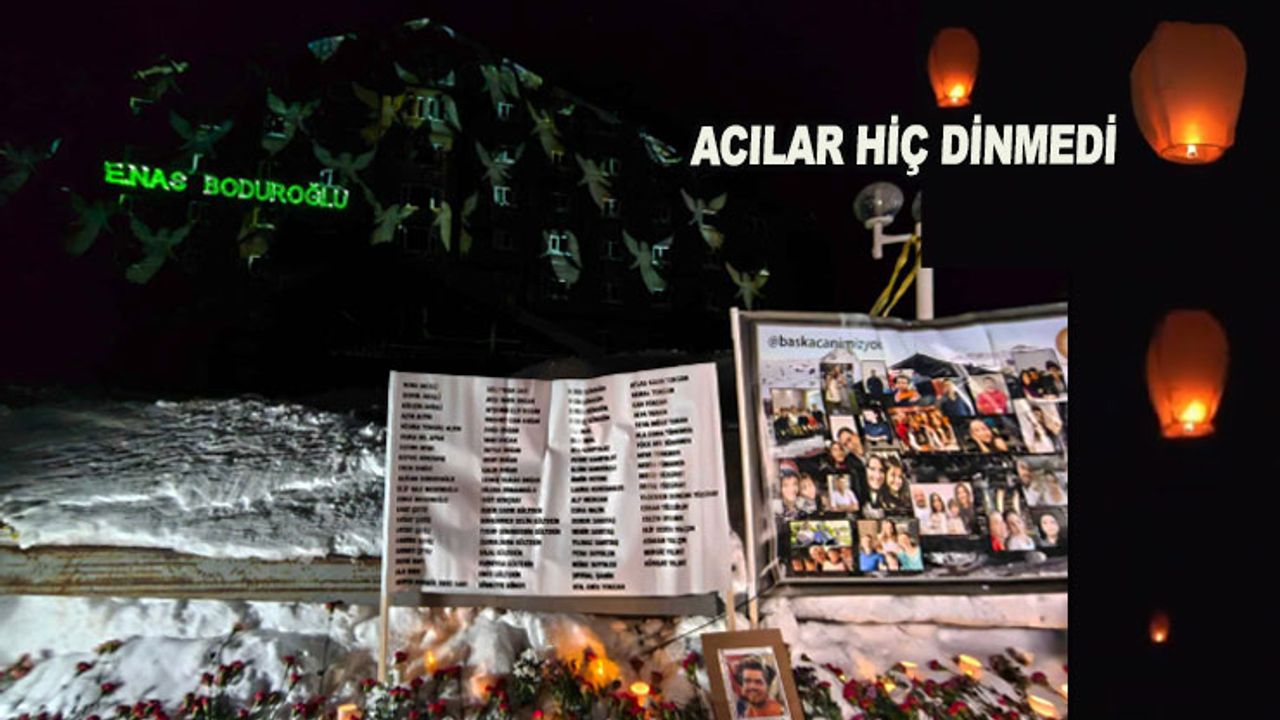 78 kişinin hayatını kaybettiği ve 133 kişinin yaralandığı Grand Kartal Otel faciasının birinci yılında yangının çıktığı saat 03.18'de anma töreni düzenlendi. Törende yangında yaşamını yitirenlerin fotoğrafları ile isimlerinin bulunduğu pankart...