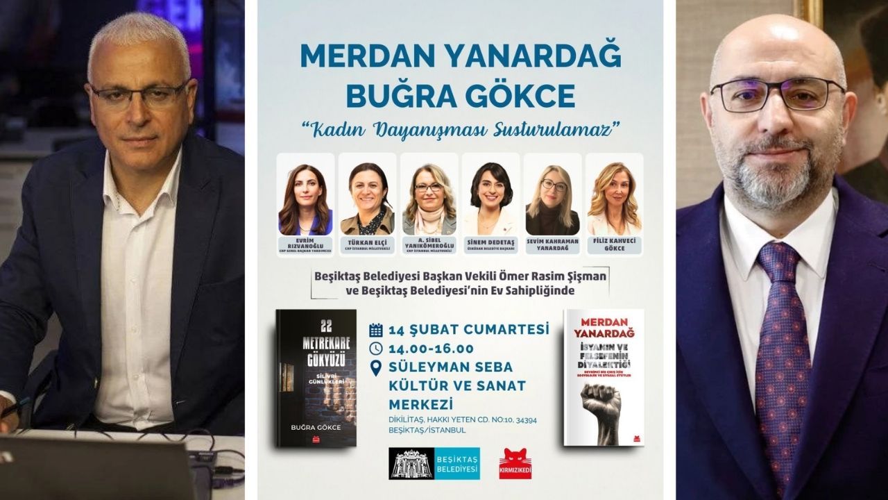 Merdan Yanardağ ve Buğra Gökce’nin tutukluluğuna dikkat çekmek ve dayanışmayı büyütmek amacıyla Beşiktaş Belediyesi Süleyman Seba Kültür ve Sanat Merkezi’nde düzenlenecek imza gününde, Yanardağ ve Gökce’nin kitapları kadın dostları, eşleri Sevim Kahraman Yanardağ ve Filiz Kahveci Gökce tarafından imzalanacak.